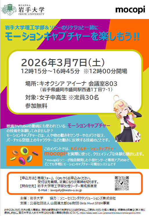 岩手大学理工学部&ソニーのリケジョと一緒にモーションキャプチャーを楽しもう!!